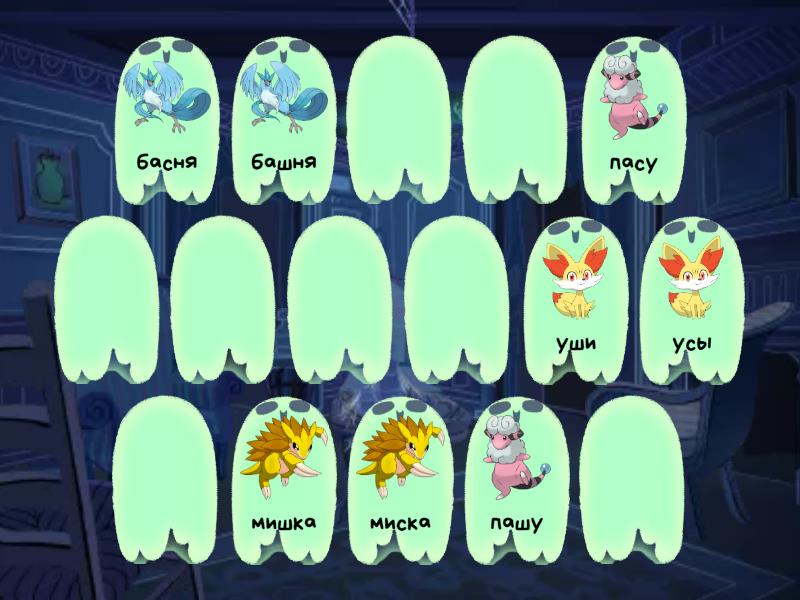 уши - усы, пашу - пасу, мишка - миска, башня - басня, пешки - пески, Иришка - ириска, нашить - носить, прошить - просить,
