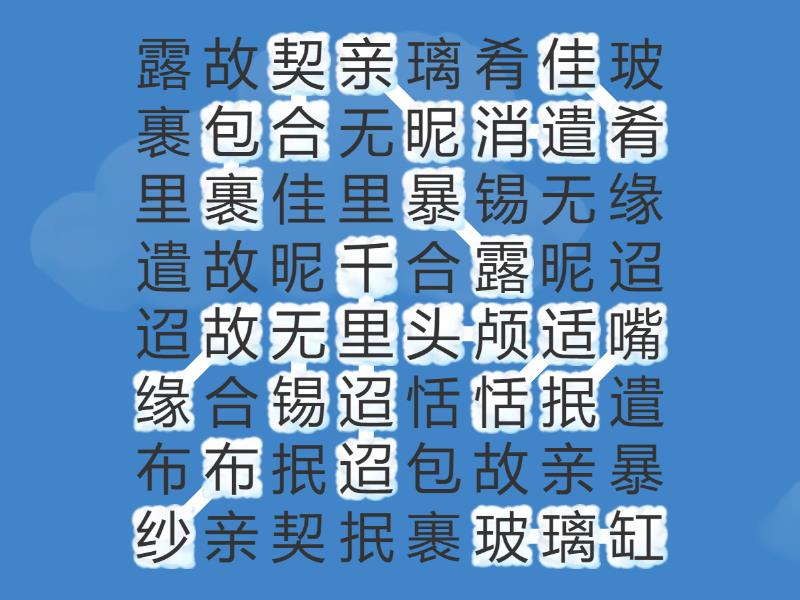 无锡, 纱布, 包裹, 头颅, 千里迢迢, 恬适, 玻璃缸, 佳肴, 消遣, 缘故, 暴露, 亲昵, 契合, 抿嘴,