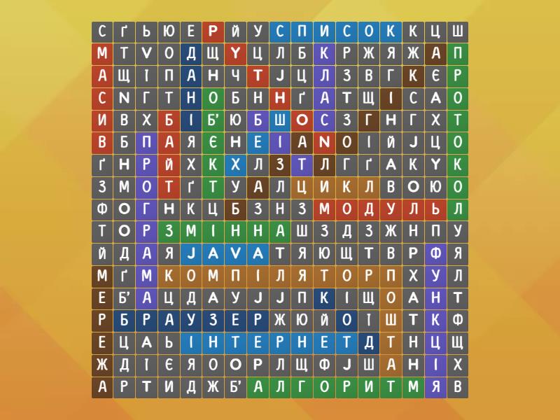 алгоритм, програма, Python, Java, база, дані, цикл, змінна, функція, масив, список, логіка, код, компілятор, обʼєкт, клас, модуль, інтернет, мережа, браузер, пошта, протокол, біт, байт, хеш,