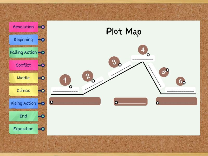 Exposition, Conflict, Rising Action, Climax, Falling Action, Resolution, Beginning, Middle, End.