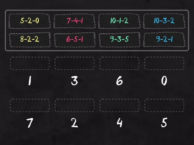 10-1-2 - 7, 9-3-5 - 1, 6-5-1 - 0, 8-2-2 - 4, 7-4-1 - 2, 5-2-0 - 3, 10-3-2 - 5, 9-2-1 - 6,