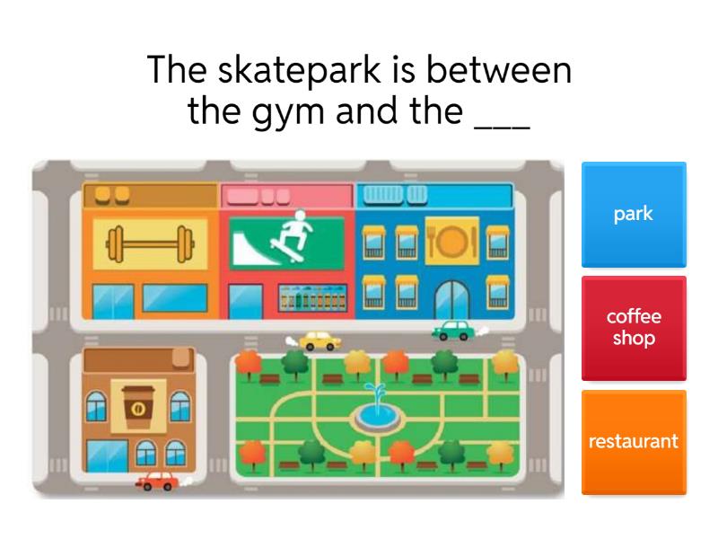 1) The movie theater is ___ the coffee shop a) next to b) between c) across from 2) The movie theater is ___ the coffee shop a) next to b) between c) across from 3) The movie theater is ___ the coffee shop and the skatepark a) next to b) between c) across from 4) The restaurant is across from the ___ a) park b) gym c) skatepark 5) The skatepark is between the gym and the ___ a) park b) coffee shop c) restaurant 6) Lucy's backpack is ___ the desk. a) on b) under c) in 7) Her pencil case is on the a) desk b) bed c) speakers 8) Her jeans are ___ the closet. a) on b) in c) under 9) Emily ___ cook a) can b) can't 10) Emily ___ swim a) can b) can't 11) Logan ___ speak Japanese a) can b) can't 12) Riley ___ dance. a) can b) can't 13) ___ my pens. a) this are b) these are c) this is 14) And ___ are my erasers. a) this b) these c) that 15) ___are your books and ___'s your pencil case. a) this, these b) these, this c) those, that 16) What about ___ red pen? Is ___ Mrs. Scott's? a) that, this b) these, these c) those, this 17) I ____ at 6:45 a) get up b) take a shower c) go to bed 18) He ____ at 10:00 a) get up b) has classes c) goes home 19) They ____ at 19:30 a) have breakfast b) take a shower c) have dinner 20) They ____ at 13:30 a) go home b) have lunch c) go to bed