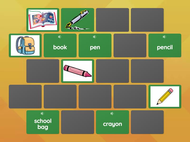pencil, pen, school bag, crayon, book, notebook, pencil case, sharpener, ruler, eraser, scissors ,