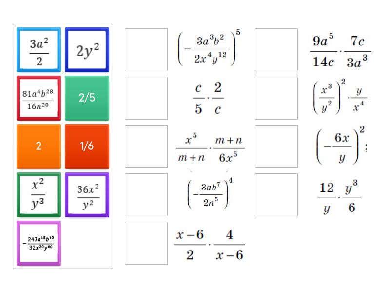 Розвязування вправ на множення і педнесення до степеня раціональних дробів