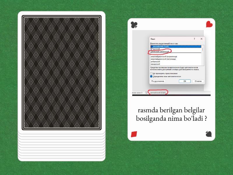 word dasturida , hujjatlar uchun ishlatiladigan , asosiy shrift turi qaysi ? t dan boshlanar edi, word dasturida , hujjatlar uchun ishlatiladigan, shrift o'lchami nechchi ? 10 dan katta, word dasturida , hujjatlarda matn qaysi tomonga tekislanadi ,chapga,o'nga yoki boshqa edi ?, word dasturida hujjatlarda interval (mantlar oralig'i) nechi bo'lar edi ? 1 dan katta, ushbu rasmdagi qizil bilan belgilangan belgi orqali nima ish qilar edik ? , ushbu klaviaturadagi tugma orqali word dasturida nima ish qilar edik?, abzas klaviaturadagi qaysi tugma orqali qo'yiladi?, ushbu rasmdagi qizil bilan belgilangan belgi bosilganda matn qaysi tarafga tekislanadi ?, ctrl+c tugmalar birgalikda bosilganda nima bo'ladi ?, rasmda berilgan belgilar bosilganda nima bo'ladi ?, word dasturida matndagi grammatik xatoliklarni tuzatish uchun nima qilar edik ?, rasmdagi belgilangan belgilar orqali nimalar tanlanadi?.