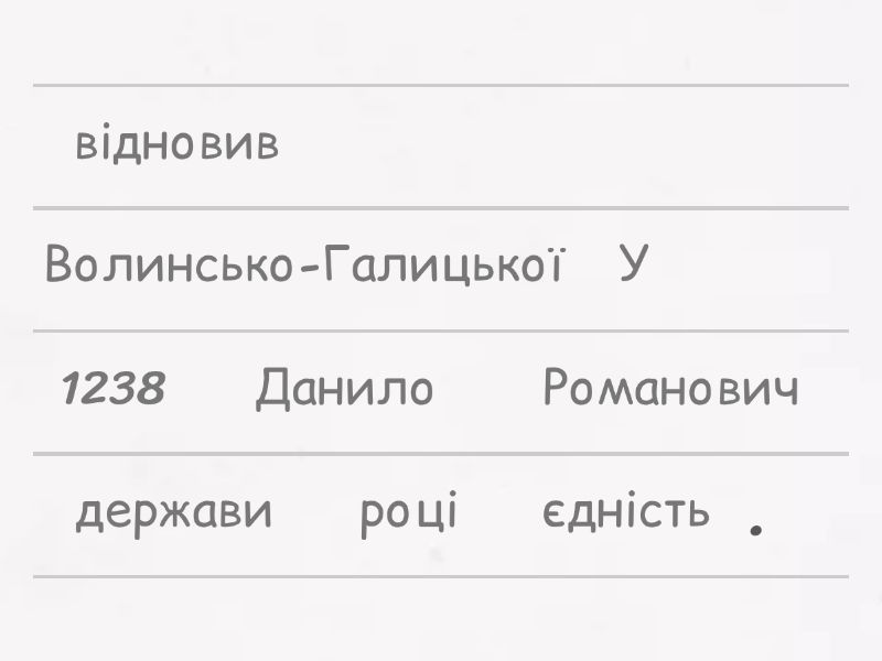 У 1238 році Данило Романович відновив єдність Волинсько-Галицької держави., Того ж року він приєднав Галицьке князівство, зміцнивши свою владу., Данило правив у згоді зі своїм братом Васильком, що сприяло стабільності в державі., У 1238 році він розгромив тевтонських лицарів під Дорогичином і зупинив їхнє просування на українські землі., У 1239 році князь підпорядкував собі Київ, розширивши територію свого впливу., У 1245 році Данило розбив угорсько-польські війська під Ярославом, подолавши боярську опозицію., У боротьбі проти боярської верхівки він спирався переважно на підтримку міщан., Наприкінці 1245 року Данило поїхав до Золотої Орди, де хан Батий підтвердив його право на князювання., Князь проводив активну зовнішню політику й намагався створити антимонгольську коаліцію серед європейських держав., У 1253 році він коронувався в Дорогичині та згодом переніс столицю до збудованого ним міста Холм.,