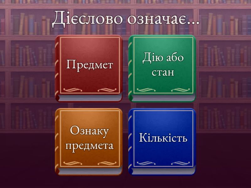 1) Дієслово означає... a) Предмет b) Дію або стан c) Ознаку предмета d) Кількість 2) У реченні дієслово виступає... a) Присудком, рідше - іншим членом речення b) Тільки присудком c) Підметом d) Обставиною та присудком 3) Усі слова є дієсловами в рядку: a) Біг, спів, стрибок, читання b) Книга, зошит, ручка, стіл c) Писати, читають, думає, біжить d) Веселий, швидкий, гарний, новий 4) Незмінні форми дієслова в рядку: a) Стоїш, писав, говорити b) Читаєш, читаючи, прочитано c) Пишеш, прочитаний, забуто d) Забувати, забуто, забувши 5) Дієслово в неозначеній формі ЗАВЖДИ має: a) Префікс b) Суфікс -ся (-сь) c) Суфікс -ти (-ть) d) Префікс і суфікс 6) Форма дієслова, у якій можна визначити особу, називається... a) Особова b) Особиста c) Особлива d) Визначена 7) ТІЛЬКИ особові дієслова є в рядку: a) Писав, писати, пишуть b) Напише, написано, написати c) Пише, пишете, пишемо d) Писаний, пишеш, писати 8) ТІЛЬКИ дієслова доконаного виду в рядку a) Знайти, пошукати, шукали b) Прочитає, знайде, перевезе c) Писати, виписати, записати d) Допомагати, обробляти, залишати 9) ЛИШЕ форми недоконаного виду мають дієслова... a) Минулого часу b) Майбутнього часу c) Теперішнього часу d) Майбутнього та теперішнього часу 10) Майбутній час дієслів, утворений за допомогою складної форми: a) Збережеш, прочитаєш, скажеш b) Читатиму, берегтиму, відповідатиму c) Буду читати, буду берегти, буду вчити d) Сумуватиму, буду розповідати, намалюю 11) ТІЛЬКИ: дієслова І дієвідміни в рядку: a) Несемо, везете, кричите b) Любимо, крутите, скажемо c) Читаєте, ідеш, працюєш d) Зникнемо, постоїш, говорить 12) Дієслова умовного способу творимо додаванням до форм минулого часу або до неозначеної форми... a) Прислівника b) Частки c) Іменника d) Прийменника 13) Безособові дієслова, що означають фізичний стан істоти, представлені в рядку: a) Дощить, світає, похолодало b) Фортунить, таланить, щастить c) Лихоманить, хочеться, не спиться d) Вистачає, бракує, не забракне 14) УСІ дієслова пишуться ОКРЕМО з часткою НЕ: a) (Не)доїхати, (не)переживати, (не)приходити b) (Не)досолити, (не)сказати, (не)славити c) (Не)всидіти, (не)хтувати, (не)сказати d) (Не)розуміти, (не)довантажити, (не)навидіти 15) УСІ дієслова пишуться РАЗОМ із часткою НЕ в рядку: a) (не)переказати, (не)вивчити, (не)говорити b) (не)йти, (не)дочитати, (не)добігти c) (не)доїдати, (не)виконати, (не)розуміти d) (не)добачати, (не)дочувати, (не)зчутися