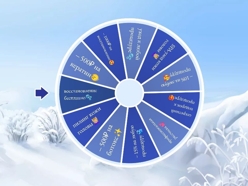 1) – 500₽ на кератин🙂‍↔️ 2) – 1000₽ на восстановление😍  3) уход к любой процедуре🫧  4) SPA-уход кожи головы 💆🏼‍♀️ 5) – 10% на любую процедуру🥰 6) секретный подарок к процедуре🎁 7) профессиональная рассческа 💕 8) – 15% на любую процедуру🫂 9) – 500₽ на ботокс✨ 10) пилинг кожи головы💆🏼‍♀️ 11) восстановление бесплатно🫧