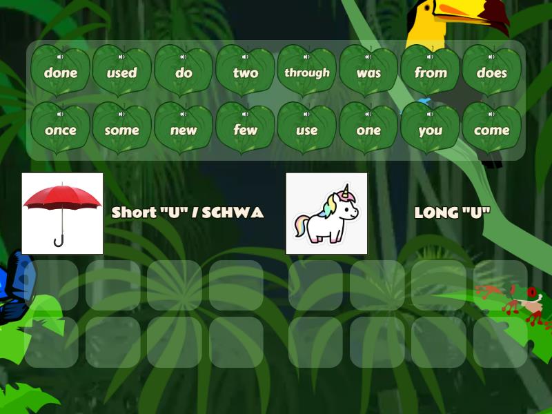 Short "U" / SCHWA: does, was, from, done, some, one, once, come, LONG "U" : you, use, used, two, do, through, few, new,