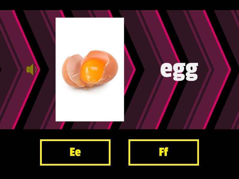 Ee: egg, alephant, exercise, excavator, elf, envelope, eagle, Easter, eight, eye, ear, Ff: frog, fish, food, flamingo, fountain, fruit, fox, flower, face, family, foot,