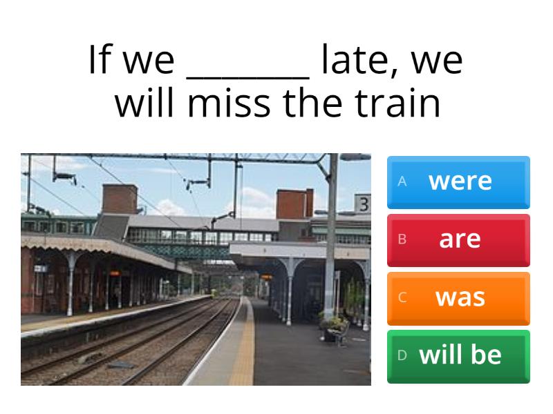 1) If we _______ late, we will miss the train a) were b) are c) was d) will be 2) We usually ________ hiking if the weather is fine. a) would go b) will go c) went d) go 3) If it doesn`t rain tomorrow, they _____________ on foot a) would go b) go c) will go d) don't go 4) If the train weren't delayed for three hours, we ____________ in London on time. a) will be b) wouldn't be c) would be d) won't be 5) If you feel seasick, you _____________ have to travel by water a) won't b) wouldn't c) didn't d) don't 6) When a plane _______________ , you need to fasten your seatbelt. a) takes off b) will take off c) take off d) would take off 7) We always book tickets in advance if we ___________ enough time. a) has b) have c) had d) will have 8) If I ___________ you, I would go on a beach holiday a) am b) will be c) were d) was 9) We ____________ some souvenirs if we had more time. a) would buy b) buy c) have bought d) will buy 10) When you buy a return ticket, you ________________ less a) don't pay b) will pay c) wouldn't pay d) pay 11) If we were in Britain, we ______________ fish and chips. a) will try b) would tried c) would try d) would tries 12) If you could come earlier, we ______________ have time to go camping a) would b) wouldn't c) will d) won't 13) If people go to Britain, they usually _________ the Tower. a) will visit b) visits c) visit d) would visit