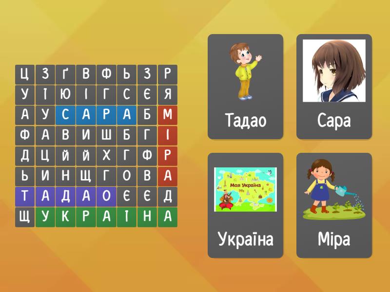 Україна - Україна, Тадао - Тадао, Міра - Міра, Сара - Сара,