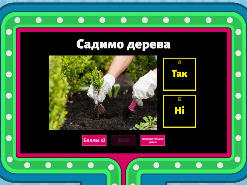 1) Садимо дерева a) Так b) Ні 2) Прибираємо сніг a) Так b) Ні 3) Білимо дерева a) Так b) Ні 4) Прикрашаємо ялинку a) Так b) Ні 5) Садимо рослини a) Так b) Ні 6) Купаємося в морі a) Так b) Ні