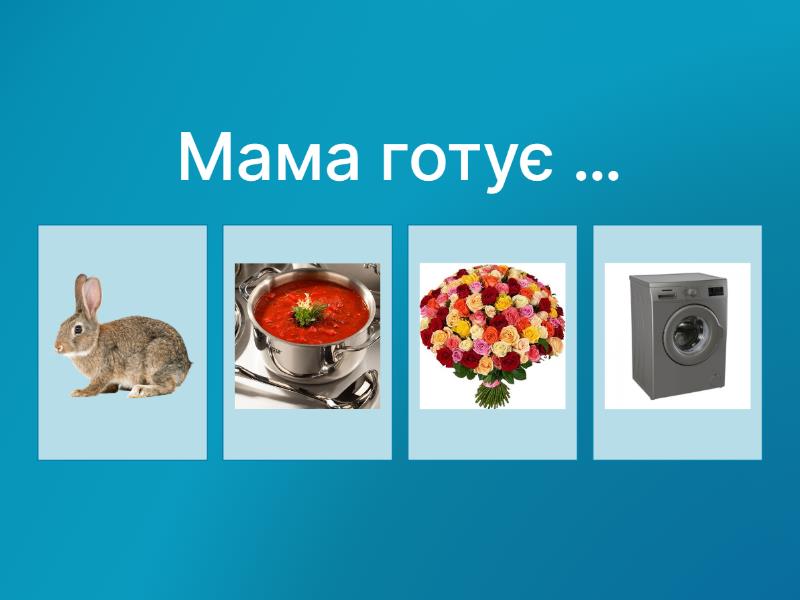 1) Мама готує ... a) b) c) d) 2) Тато ремонтує... a) b) c) d) 3) Хлопчик читає... a) b) c) d) 4) Лікар лікує... a) b) c) d) 5) Водій працює на .... a) b) c) d) 6) Картину малює ... a) b) c) d)