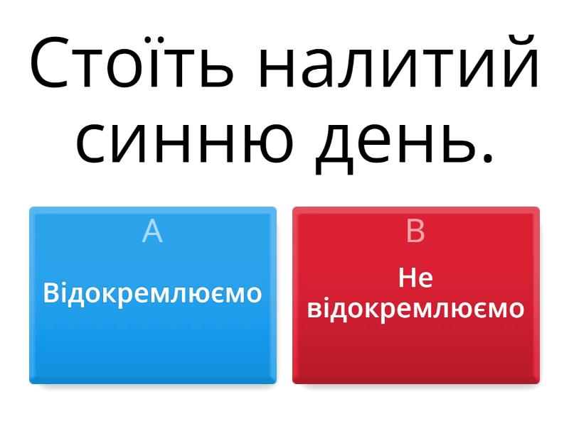 1) Стоїть налитий синню день. a) Відокремлюємо b) Не відокремлюємо 2) Вона занурена у спогади сиділа мовчки a) Відокремлюємо b) Не відокремлюємо 3) Сниться вночі мені зорями вишите небо. a) Відокремлюємо b) Не відокремлюємо 4) Запорожний дістав якийсь довгий пакунок загорнутий у брезент. a) Відокремлюємо b) Не відокремлюємо 5) Глибоко приховані спогади бентежили Олену. a) Відокремлюємо b) Не відокремлюємо 6) Ще спить земля укутана снігами. a) Відокремлюємо b) Не відокремлюємо 7) Осріблені місяцем гори блищать. a) Відокремлюємо b) Не відокремлюємо 8) Котить сонний Дніпро віками зажурені води. a) Відокремлюємо b) Не відокремлюємо 9) Денис взутий у гумові чоботи скочив у воду і потяг човен за ланцюг. a) Відокремлюємо b) Не відокремлюємо 10) Сумно на небі повитому в хмари. a) Відокремлюємо b) Не відокремлюємо 11) 3 путі далекої вернувся машиніст укритий порохом увесь пропахлий димом a) Відокремлюємо b) Не відокремлюємо 12) Із золота зіткане сяєво ллється. a) Відокремлюємо b) Не відокремлюємо 13) Рось виривається з тісних берегів обставлених скелями. a) Відокремлюємо b) Не відокремлюємо 14) Край моря сонце золотить укриті лісом гори. a) Відокремлюємо b) Не відокремлюємо 15) Стала наближатися година вирушати в дорогу. a) Відокремлюємо b) Не відокремлюємо