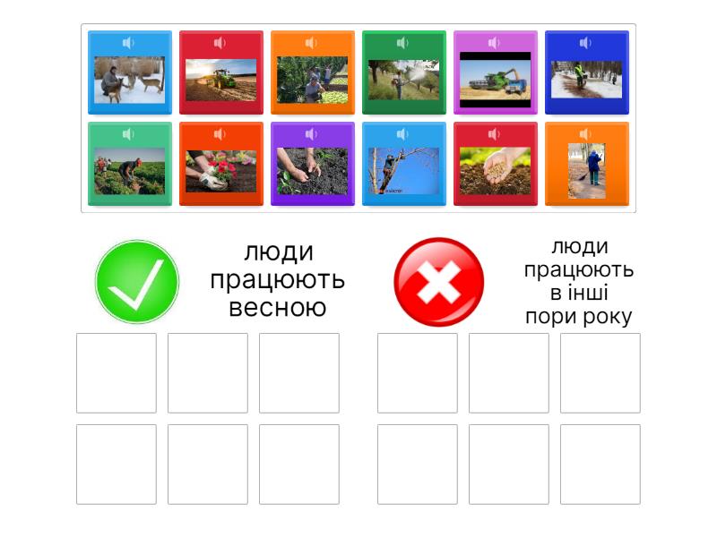люди працюють весною: , , , , , , люди працюють в інші пори року: , , , , , ,