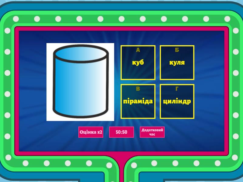 1) трапеція a) трапеція b) квадрат c) куб d) циліндр