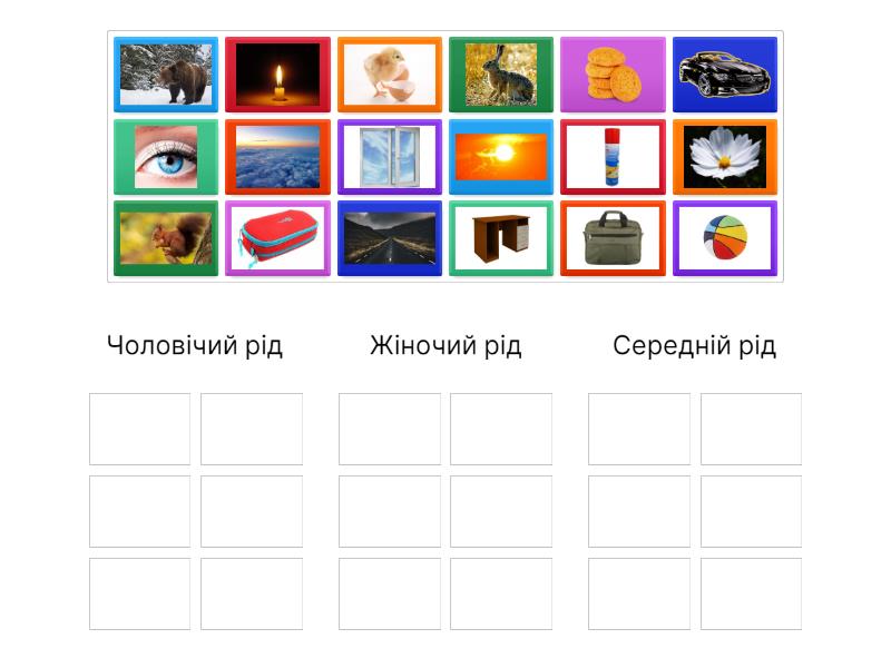 Чоловічий рід: , , , , , , Жіночий рід: , , , , , , Середній рід: , , , , , ,