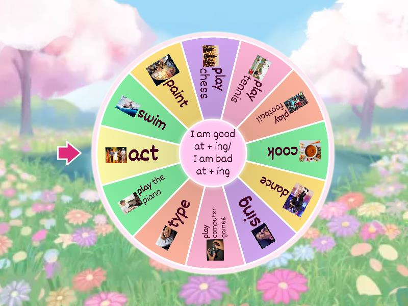 1) swim 2) paint 3) play chess 4) play tennis 5) play football 6) cook 7) dance 8) sing 9) play computer games 10) type  11) play the piano 12) act