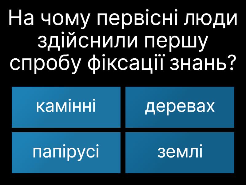 1) На чому первісні люди здійснили першу спробу фіксації знань? a) камінні b) деревах c) папірусі d) землі 2) Хто створив друкарський верстат? a) Йоган Гуттенберг b) Ван Чжень 3) Ким були започатковані соціальні мережі? a) Марком Цукербергом b) Білом Гейтсом 4) Чи становить фейк (будь-якого маштабу) загрозу у інформаційній спільноті? a) не зовсім (якщо він не маштабний та його легко розпізнати) b) так 5) Онлайн-сервіс просить користувача прийняти "умови конфіденційності" де зазначено, що дані можуть передаватися третім сторонам для маркетингових цілей. Чи є це ризиком порушення цифрової приватності? a) так b) ні 6) Який пароль надійніше використовувати у соціальних мережах? a) 16 символів та без особистої інформації та дати народження b) 8 символів без особистої інформації 7) Користувач викладає відео, яке містить елементи захищені авторським правом, без дозволу правовласника або згадки джерела. Чи є це порушенням авторського права? a) так b) ні 8) Новина з сенсаційним заголовком, перебільшеною інформацією та вирваним з контексту, є інформаційною маніпуляцією? a) так b) ні 9) Що з наведеного НЕ є відповідальною цифровою поведінкою? a) Поважати приватність інших користувачів b) Критично оцінювати інформацію перед поширенням c) Викладати особисті дані без обмежень d) Повідомляти про підозрілий контент 10) Яке з тверджень найточніше описує вплив цифрових платформ на соціальну взаємодію? a) Вони зменшують кількість міжособистісних контактів b) Формують нові форми соціальної взаємодії, які виходять за межі фізичного простору c) Вони ізолюють користувача від суспільства d) ніяк не впливають