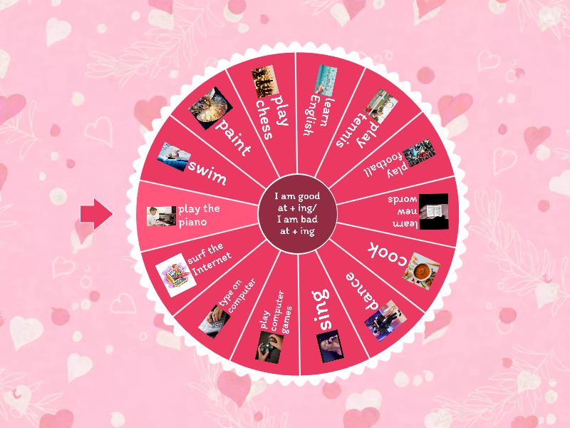 1) swim 2) paint 3) play chess 4) learn English 5) play tennis 6) play football 7) learn new words 8) cook 9) dance 10) sing 11) play computer games 12) type on computer 13) surf the Internet 14) play the piano