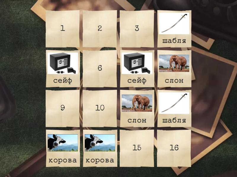 шабля, сейф, слон, корова, щур, свиня, жаба, заєць,