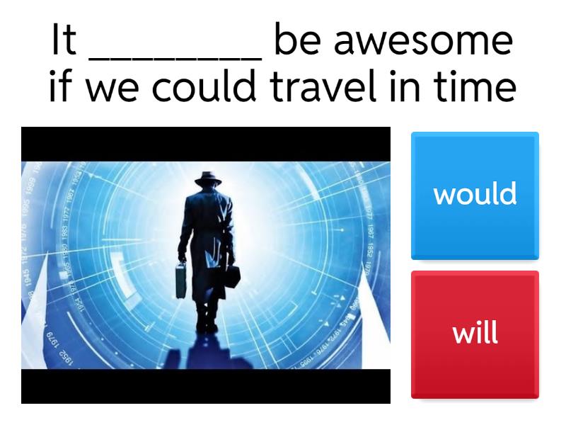 1) It ________ be awesome if we could travel in time a) would b) will 2) If I _______, I would tell you a) knew b) know 3) It _______ great if you had time a) is b) would be c) will be 4) If it snows tomorrow,  a) I will make a snowman b) I would be surprised 5) I will go to London a) if you come too b) if i had a ticket 6) What would you do a) if you are wrong? b) if you were me? 7) If you are neighbours, a) you would see each other every day b) you will probably meet tomorrow 8) If I had a dog, a) I would make a hot dog b) I will make a funny costume for it 9) If I learn English well, a) I will find a good job b) I would start learning Chinesse 10) If I stay at home, a) I will be bored b) I would play computer games