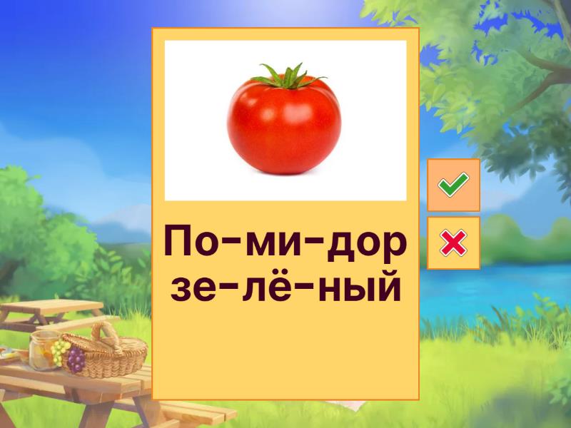Чёр-ный кот - да, Боль-шой дом - да, Крас-на-я ма-ши-на - да, Со-бач-ка ест - да, Ма-ма го-то-вит - да, Ша-рик ле-тит - да, Па-па чи-та-ет - да, Крас-ный ли-мон - да, Ар-буз - да, По-ми-дор зе-лё-ный - да,