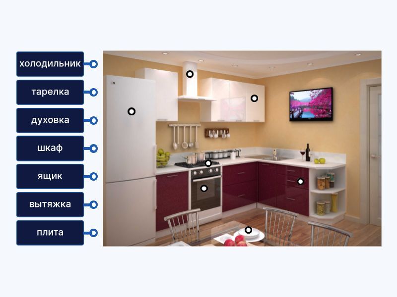 духовка, плита, холодильник, вытяжка, тарелка, шкаф, ящик.
