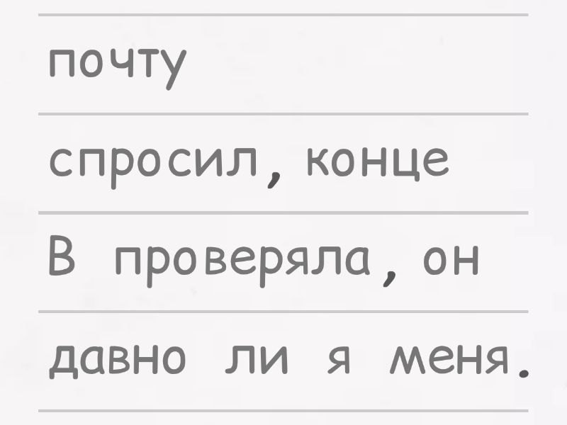 В конце, он спросил меня, давно ли я проверяла почту., Продавец спросил, нужен ли мне пакет., Мой друг узнавал, сможет ли он переночевать у нас в эти выходные., Они поинтересовались, есть ли у нас всё необходимое., Она спросила, часто ли я читаю новости, так как я не был в курсе последних событий., Марк спросил, нужна ли мне помощь.,