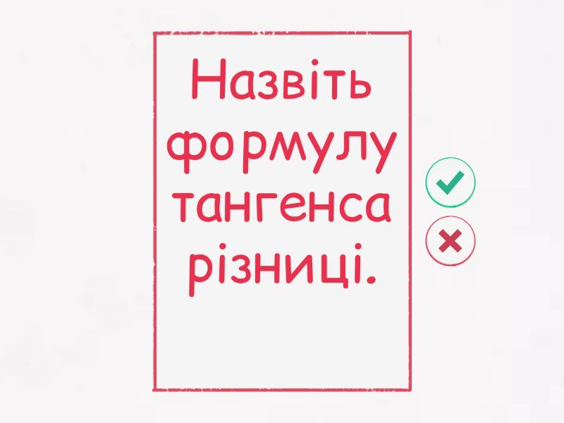 Назвіть формулу косинуса різниці., Назвіть формулу косинуса суми., Назвіть формулу синуса різниці., Назвіть формулу синуса суми., Назвіть формулу тангенса суми., Назвіть формулу тангенса різниці.,