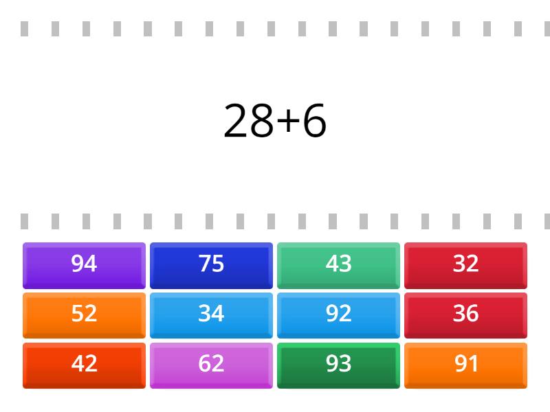 34 - 28+6, 36 - 28+8, 91 - 84+7, 93 - 84+9, 62 - 56+6, 75 - 67+8, 43 - 37+6, 42 - 38+4, 94 - 87+7, 92 - 83+9, 32 - 29+3, 52 - 45+7,