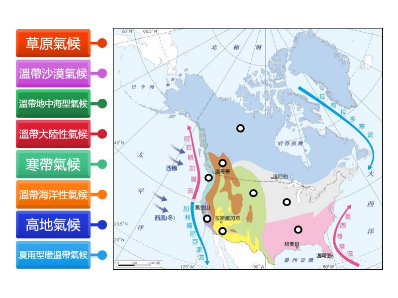 夏雨型暖溫帶氣候, 溫帶大陸性氣候, 溫帶海洋性氣候, 溫帶地中海型氣候, 溫帶沙漠氣候, 高地氣候, 寒帶氣候, 草原氣候.