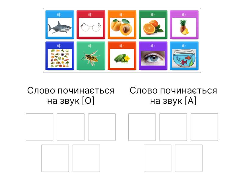 Слово починається на звук [О]: , , , , , Слово починається на звук [А]: , , , , ,