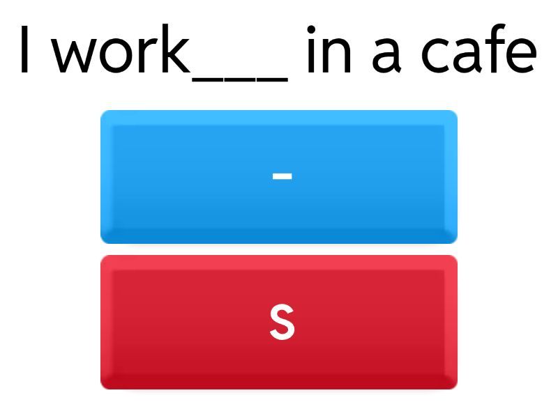 1) I work___ in a cafe a) - b) s 2) She often work___ from home a) - b) s 3) Leo and John never go__ to hospital a) - b) es 4) Mary is a teacher. She teach__ in a public school a) - b) es 5) I want___ a different job a) - b) s 6) He like___ his job a) - b) s