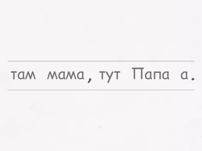 Папа тут, а мама там., Мама тут, а Анна там., Кот тут, а утка там., Он тут, а она там., Суп тут, а сок там., Анна тут, а утка там., Сок тут, а суп там., Кот и утка тут, а папа там., Мама и папа тут, а кот там., Анна и Эмма тут, а томат и капуста там.,