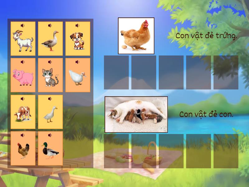 Bé hãy chọn con vật đẻ trứng - con vật đẻ con.